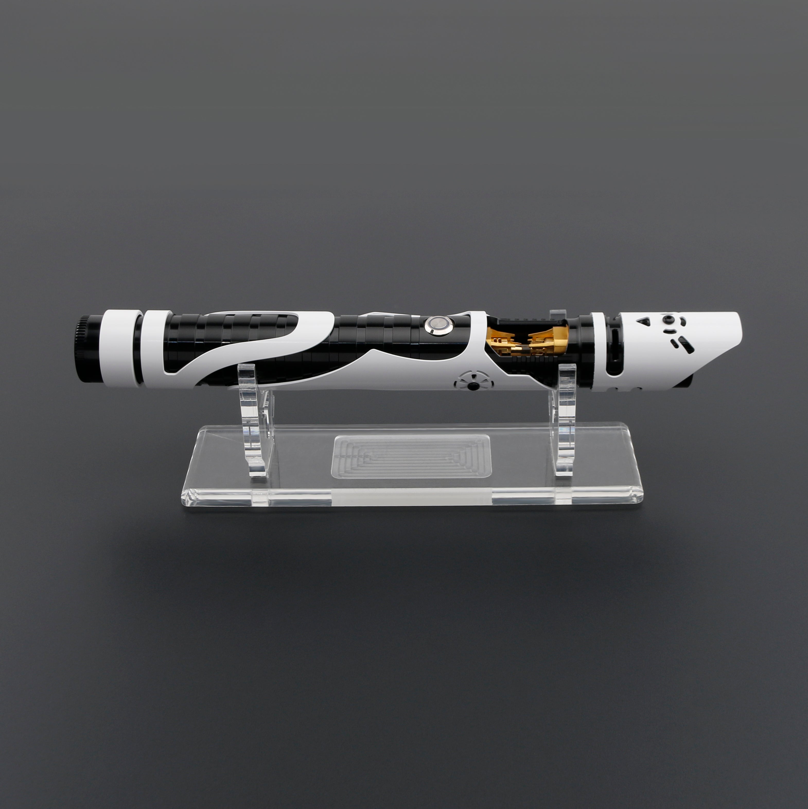 The Soldier lightsaber boasts a bold, tactical design built for resilience and precision. Its sturdy metal hilt, accented with rugged textures and minimalist detailing, offers a reliable grip. Equipped with a powerful Neopixel blade, it delivers brilliant illumination, perfect for enthusiasts who value strength, durability, and practical elegance.