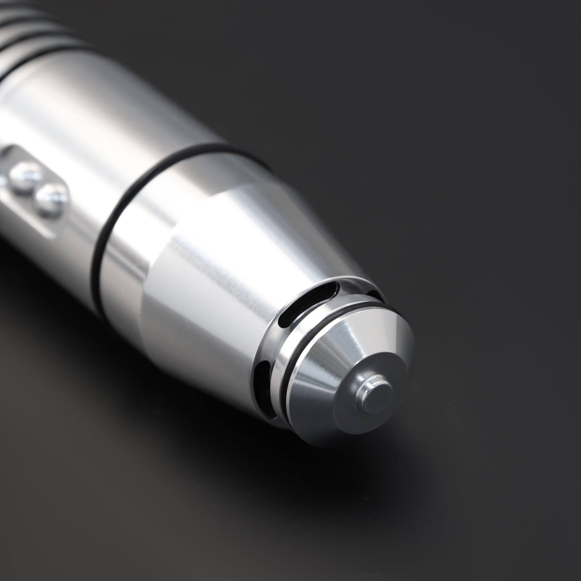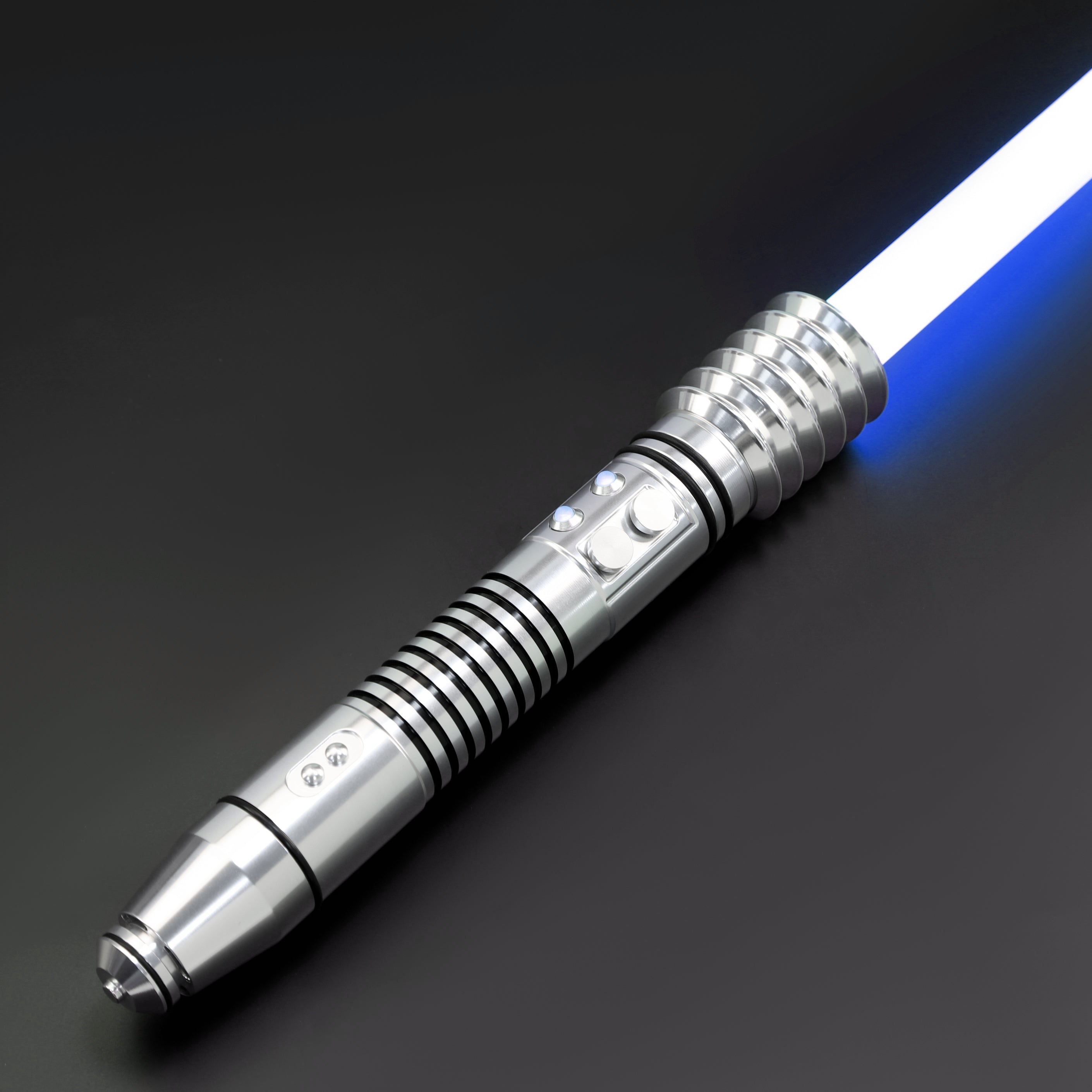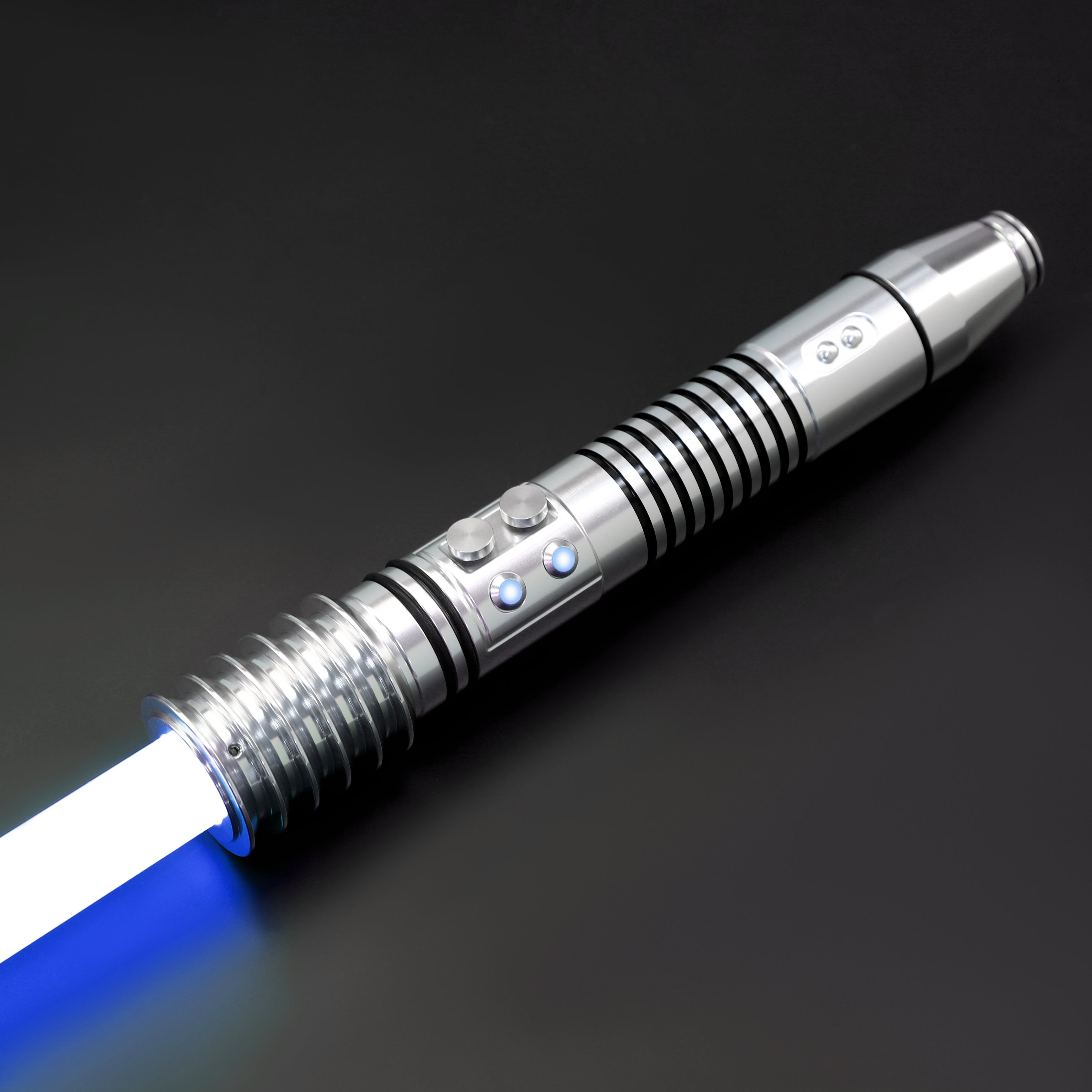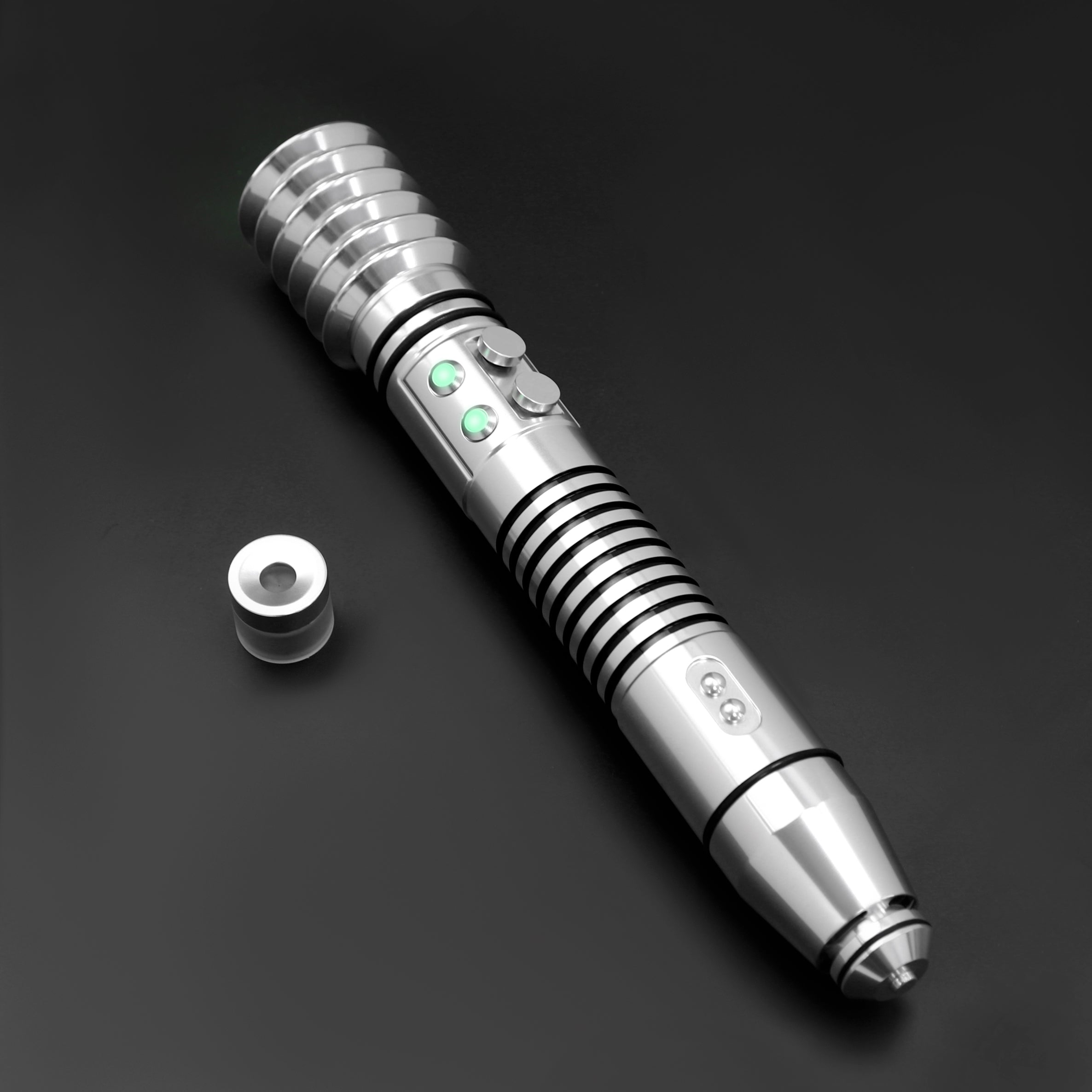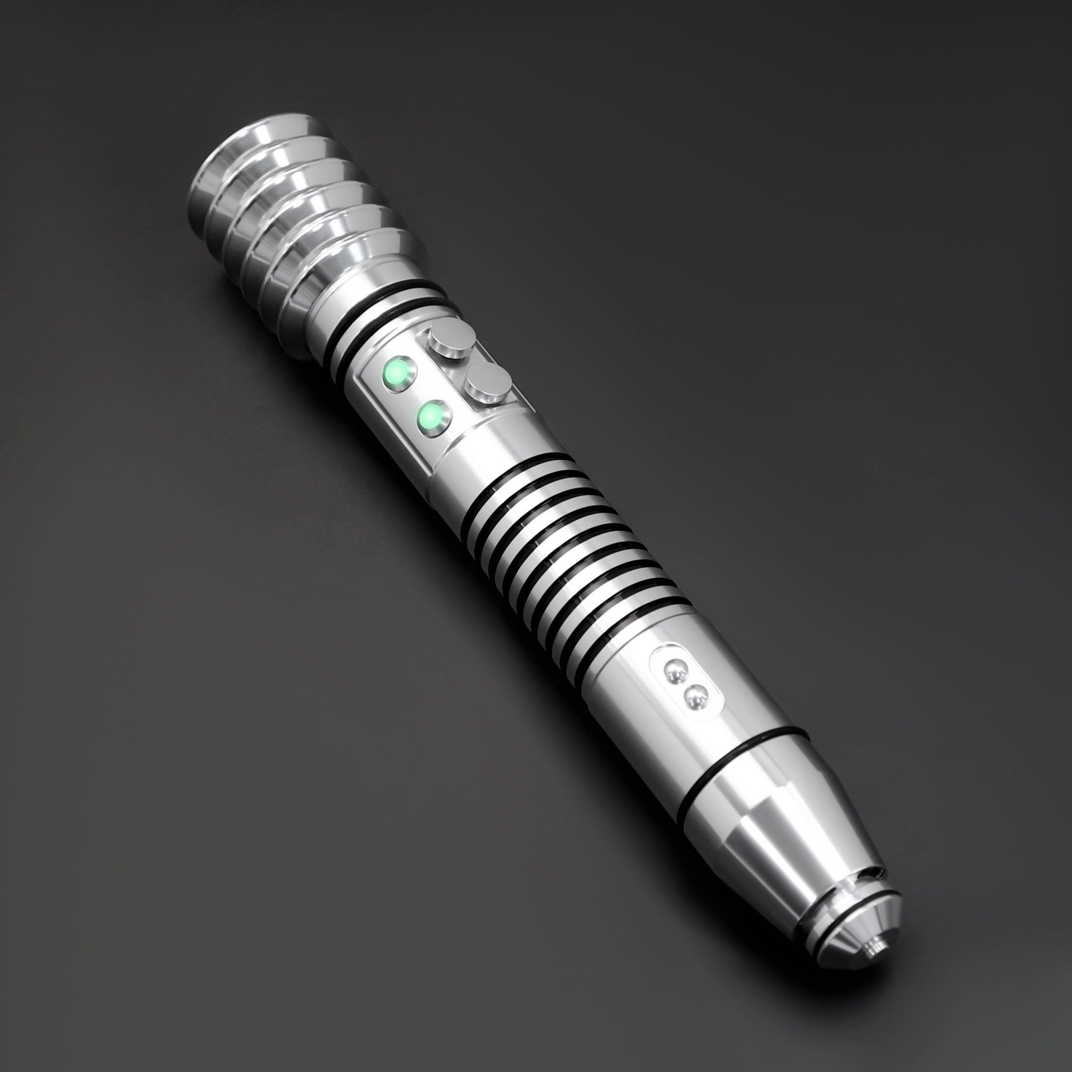 The prop replica is made of high-quality silver metal and processed with exquisite craftsmanship. The surface of the handle has a unique texture, like a flowing nebula. This design not only echoes the mystique of the Star Force, but also showcases the majesty and power of Kit Fisto as a Jedi Knight.